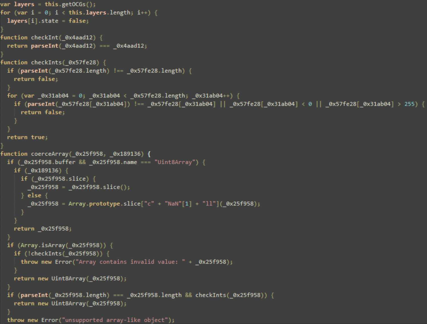 After multiple rounds of deobfuscation efforts, the JavaScript reads: