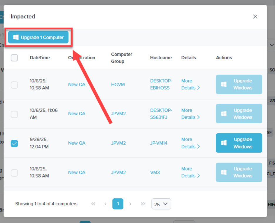 If you only want to upgrade one computer, you can also select the 'Upgrade Windows' button that corresponds to that machine. After selecting either of these buttons, ThreatLocker will begin the installation process silently on the selected machines.